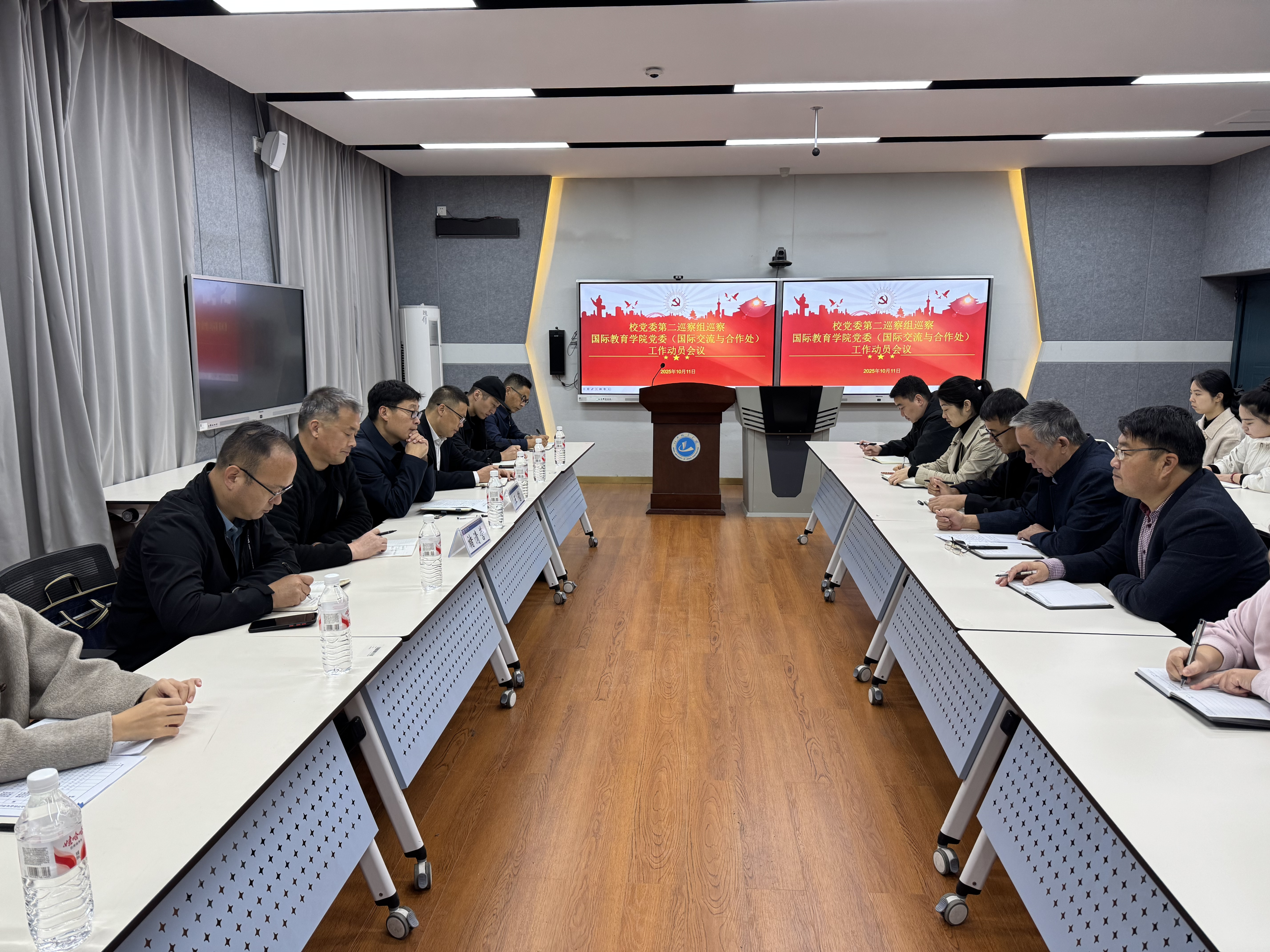 根据公司党委巡察工作统一部署,10月11日上午,公司党委第二巡察组巡察公司党委(国际交流与合作处)工作动员会议在和谐校区美荟楼207教室召开。公司党委第二巡察组组长王哲及巡察组成员,公司领导班子成员、全体教师及员工代表参加会议。会议由公司党委书记吕鹏飞主持。