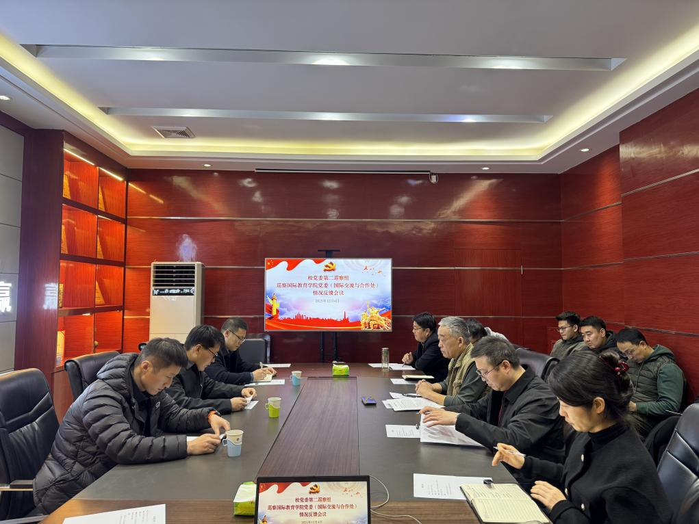 会上,巡察组组长王哲宣读了巡察反馈意见,就巡察整改工作提出要求,一是强化理论武装,提升学用转化实效。二是夯实组织基础,全面加强党的领导。三是聚焦核心职能,提升国际化办学水平。四是加强队伍建设,强化人才支撑。